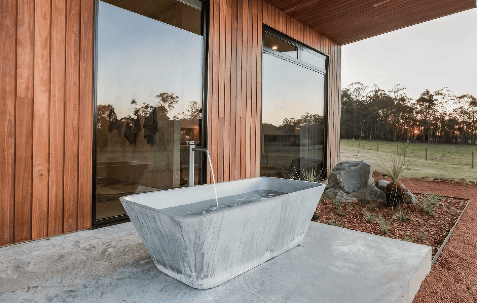 Situated on 180 acres of bushland, pasture and vineyard – 8 Paddocks is a boutique sanctuary with three chalets built entirely from locally-sourced Australian materials. Within the Treeton Valley, these chalets are just minutes from Cowaramup and fit the brief for a peaceful escape with no children and no worries. Large double-glazed windows offer full immersion into the environment and expansive surrounding bushland, while a private deck, fire pit, and outdoor bath offer plenty of opportunity for stargazing.